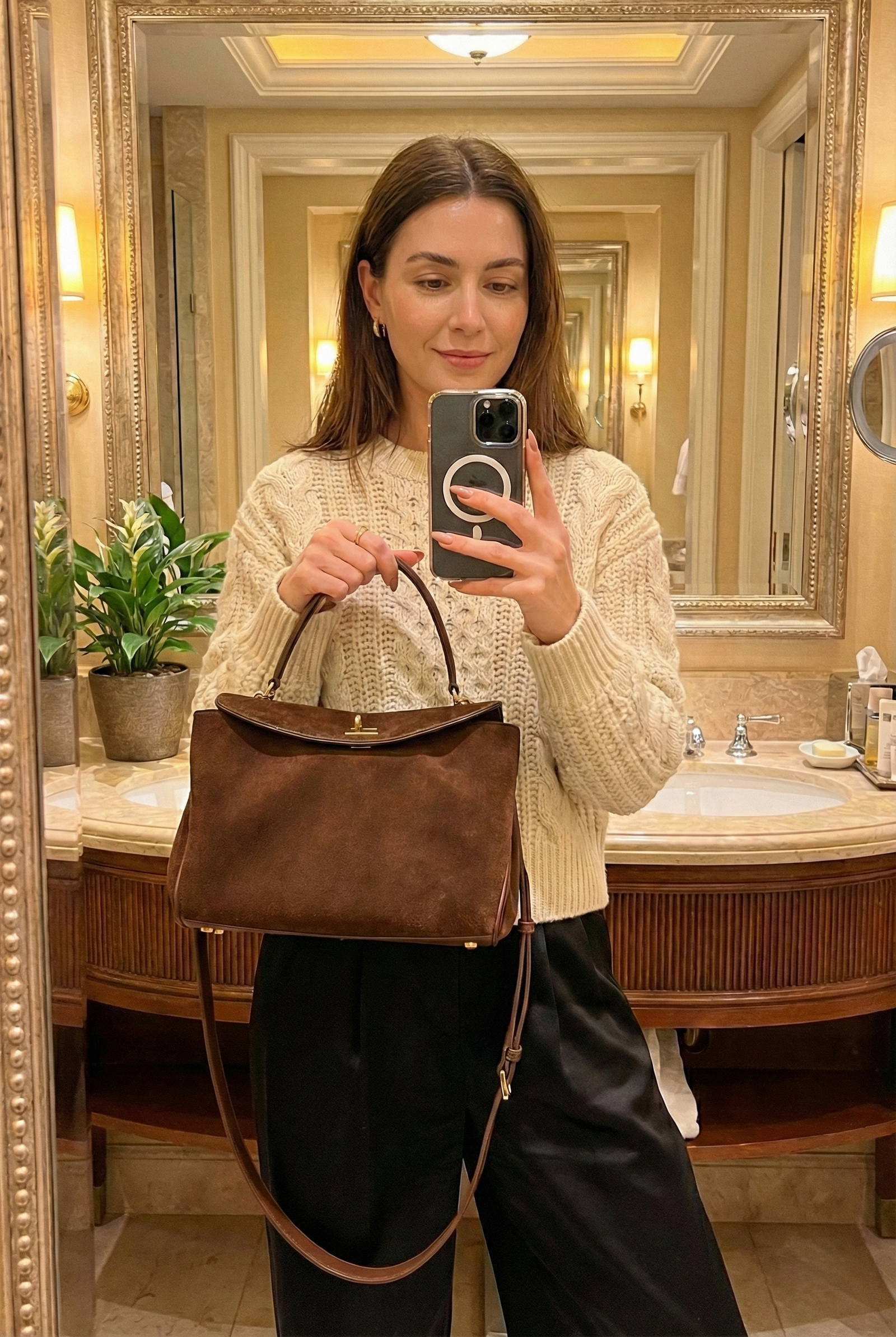 Soft suede meets a structured silhouette for a refined everyday bag that feels elegant, timeless, and easy to style.